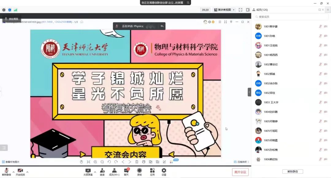 杨茂琳向大家传授物理学考研复试攻略,表明自我介绍时一定要自然,发音标准,在复试前多加练习,调整自己,同时针对考研员工们在复试时的问题做出解答。