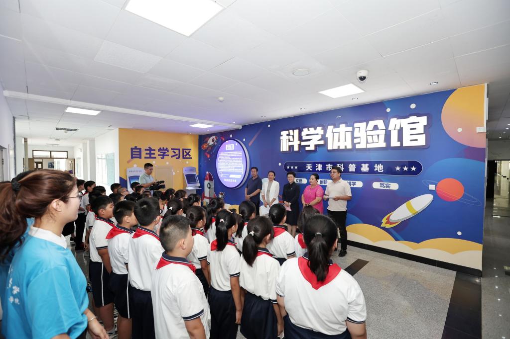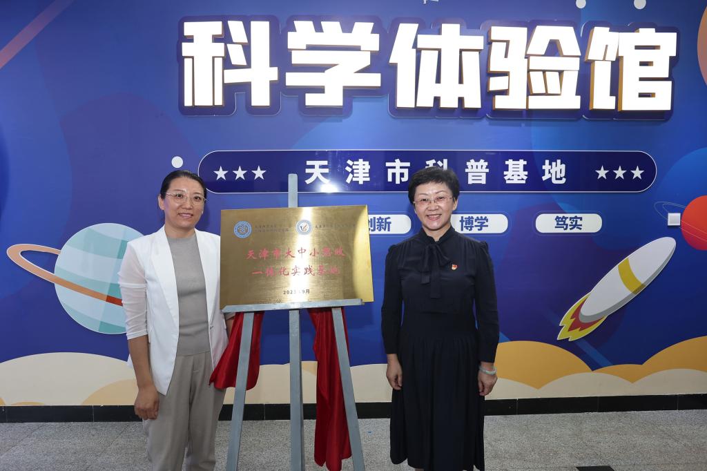 刘英和赵晓艳共同为天津市大中小学思政一体化基地揭牌并致辞。双方表示,此次活动是打开小员工科学视野的有利途径,将充分利用科普资源做好大中小思政一体化建设。双方还就学科科技节和课后服务建设等方面达成合作意向。