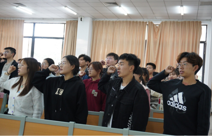 随后,全体员工干部进行了宣誓。誓词铿锵有力,表达了同学们对于员工工作的热忱、积极服务同学的奉献精神。
