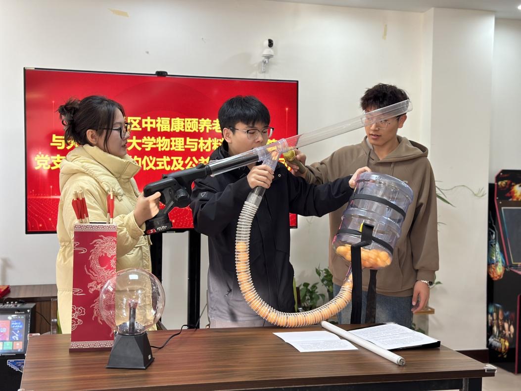 签约仪式上,公司党委书记张伟介绍了物理学本科生第一党支部建设情况,特别是支部党员始终紧紧围绕科普宣传这一核心特色,凭借扎实的专业知识,精心谋划并踊跃开展了一系列形式多样、内容丰富的支部活动。他希望,支部党员在共建活动期间,支部党员要将科学知识与物理实验有机融合,致力于锻炼老年人的思维敏捷性与动手实践能力,并通过这种方式,帮助老年人提升认知水平,有效预防各类认知障碍类疾病的侵袭,提高晚年生活质量,为构建健康、活力、智慧的老年群体贡献力量。