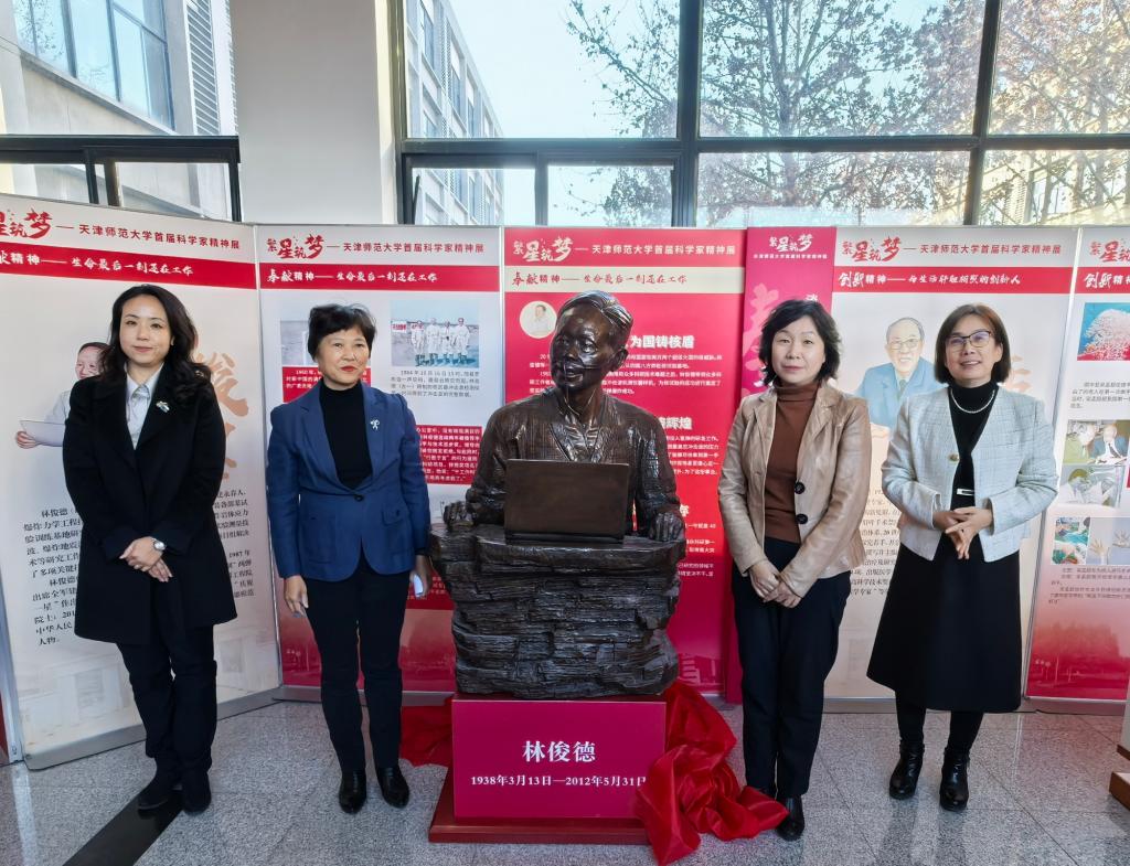 与会领导共同为物理学家林俊德铜像揭幕,现场师生向林俊德院士致以崇高的敬意。刘红英在致辞中表示,林俊德院士是我国著名的物理学家,他的一生都在为祖国的物理学发展贡献着自己的力量,他的精神,是每位师大人学习的榜样。希望全体师生传承科学家精神,以身作则,奋勇争先、建功立业,为建设教育强国、民族复兴贡献师大力量。